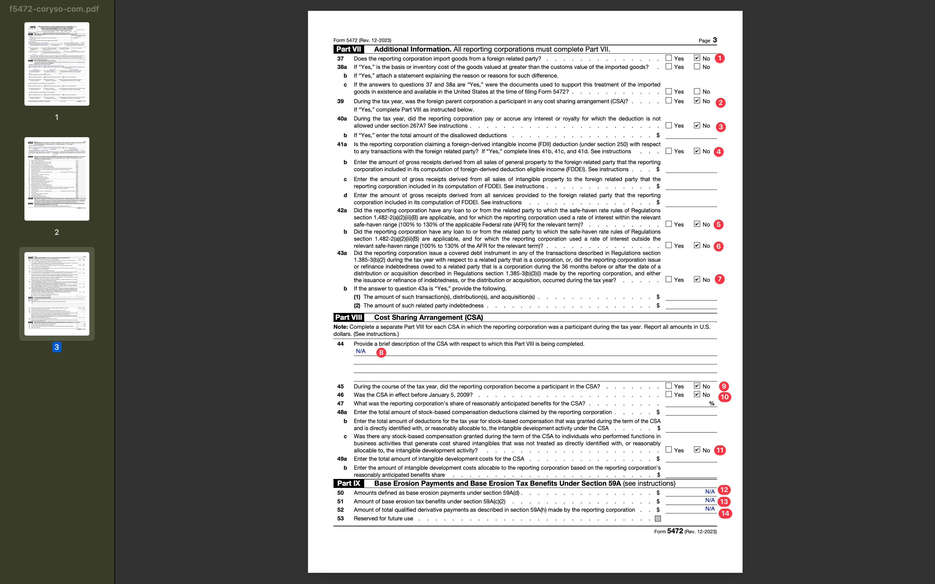 At red dot 12 (i.e., Part I 1j), check this box if it is the company’s first year filing Form 5472.